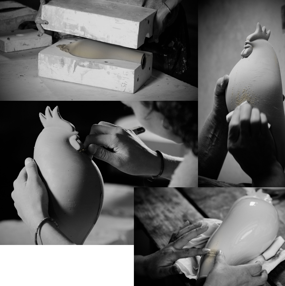 Une fois la forme trouvée, place à la matière. Résine, plâtre, cire… Chaque prototype est façonné, observé, corrigé. Objectif : un Gallus qui s’impose par sa seule présence. Un objet qui parle autant à l’œil qu’à la main, qui exprime un équilibre subtil : entre la fierté et la retenue, entre la puissance et la grâce.